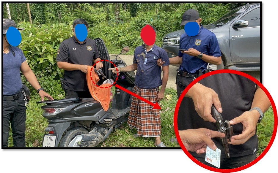 “จับกุม อาวุธปืน” 13 ธันวาคม 2567 โดย Admain / งานสืบสวน,ตุลาคม ส วันที่ 27 ตุลาคม 2568 เวลาประมาณ 13.48 น. สถานที่จับกุม ริมถนนคอนกรีตบ้านพงษ์มูซู ม.1 ต.บาตง อ.รือเสาะ จว.นราธิวาส จับกุมผู้ต้องหา จำนวน 1 ราย ที่อยู่ 2/1 ม.2 ต.โคกสะตอ อ.รือเสาะ จว.นราธิวาส พร้อมของกลาง 1.อาวุธปืนพกสั้น(ลูกโม้)ด้ามพลาสติกสีดำ ขนาด .380 หมายเลขทะเบียนปืน 170658-LW จำนวน 1 กระบอก 2.เครื่องกระสุนปืนขนาด .380 จำนวน 1 นัด 3.ซองปืนชนิดผ้าสีดำ จำนวน 1 ซอง ตำแหน่งที่พบของกลาง ของกลางลำดับที่1-3 ห่อด้วยผ้าสีส้มซุกซ่อนอยู่ในกระเป๋าผ้าร่มลายดอกไม้หลากสี ซึ่งตกอยู่บริเวณข้างรถจักรยานยนต์ (ผู้ต้องหา)ขณะเจ้าหน้าที่ฯตรวจค้น/จับกุม โดยกล่าวแจ้งข้อกล่าวหา “มีอาวุธปืนและเครื่องกระสุนปืน ไว้ในครอบครองโดยไม่ได้รับอนุญาต ,พาอาวุธปืนติดตัวไปในเมือง หมู่บ้าน หรือทางสาธารณะโดยไม่ได้รับอนุญาตให้มีอาวุธปืนติดตัว โดยไม่มีเหตุจำเป็นเร่งด่วนตามสมควรแก่พฤติการณ์ โดยผิดกฎหมาย Facebook iconFacebookTwitter iconTwitterLINE iconLine