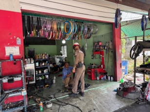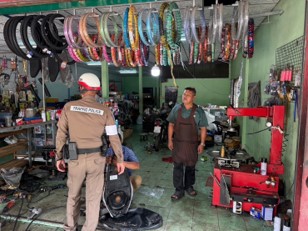 วันที่ 14 มีนาคม 2568 ด.ต.ณรงค์ชัย กิมาคม พร้อมสายตรวจจราจร เข้าตรวจสอบร้านซ้อมรถจักรยานยนต์ โดยได้ประชาสัมพันธ์ ข้อกฎหมายที่เกี่ยวข้องกับการแต่งรถจักรยานยนต์ที่แข่งในทางและขอความร่วมมือไม่ให้มีการดัดแปลงสภาพรถ แต่งรถท่อเสียงดัง แก่บุคคล เยาวชน และเด็กเพื่อไปก่อความเดือดร้อนรำคาญให้กับประชาชนทั่วไป